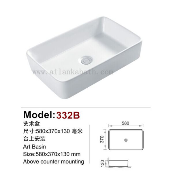Countertop Mounting Ceramic Sinks Sanitary Ware Rectangular Art Basin Bathroom Wash Basin Images |